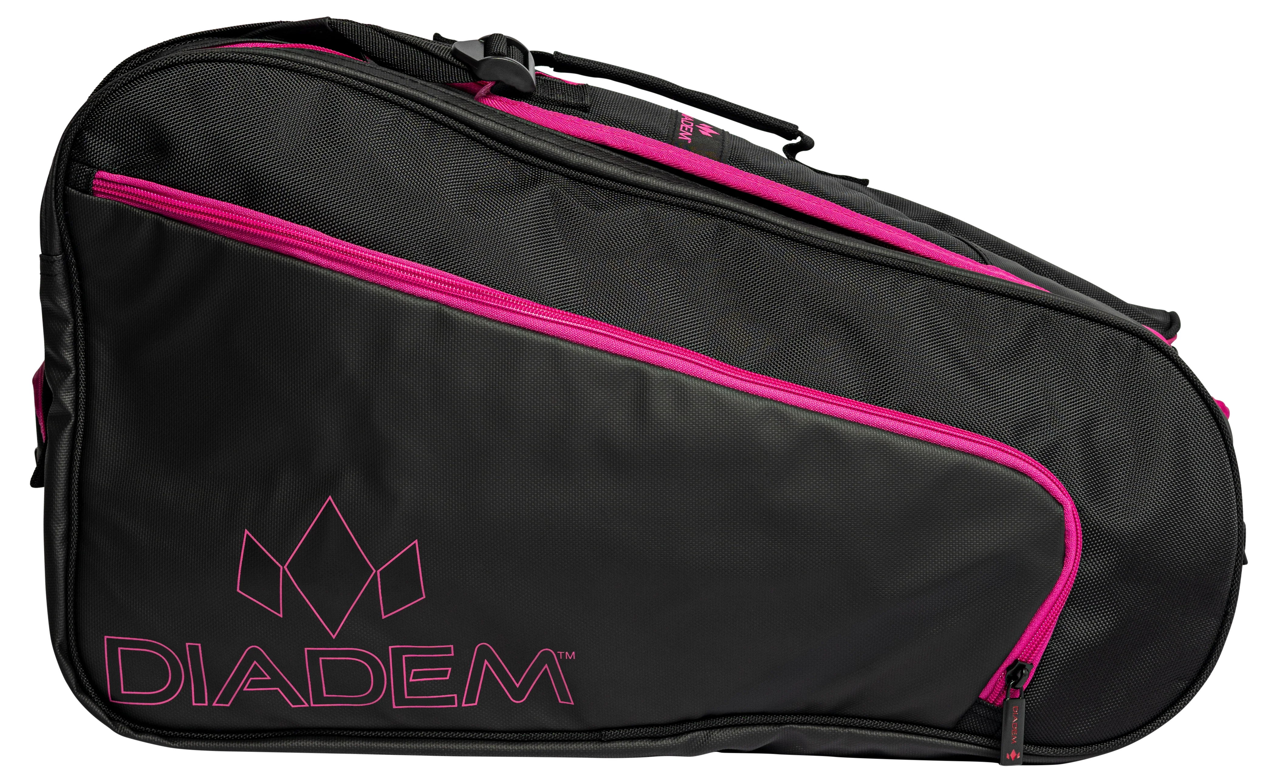 The DIADEM TOUR V2 PADDLE BAG is ideal for the serious Pickleball player.  With the ability to fit 10 paddles and your change of clothes, nothing needs to be left behind. The main compartment has a U-shaped zipper for easy access to all of your gear and a separate shoe compartment on the side.  It also features several side compartments with neoprene to keep your items separated and protected.  Made of high-quality nylon, the Diadem v2 Paddle Bag matches your paddle and keeps your stylish on court.